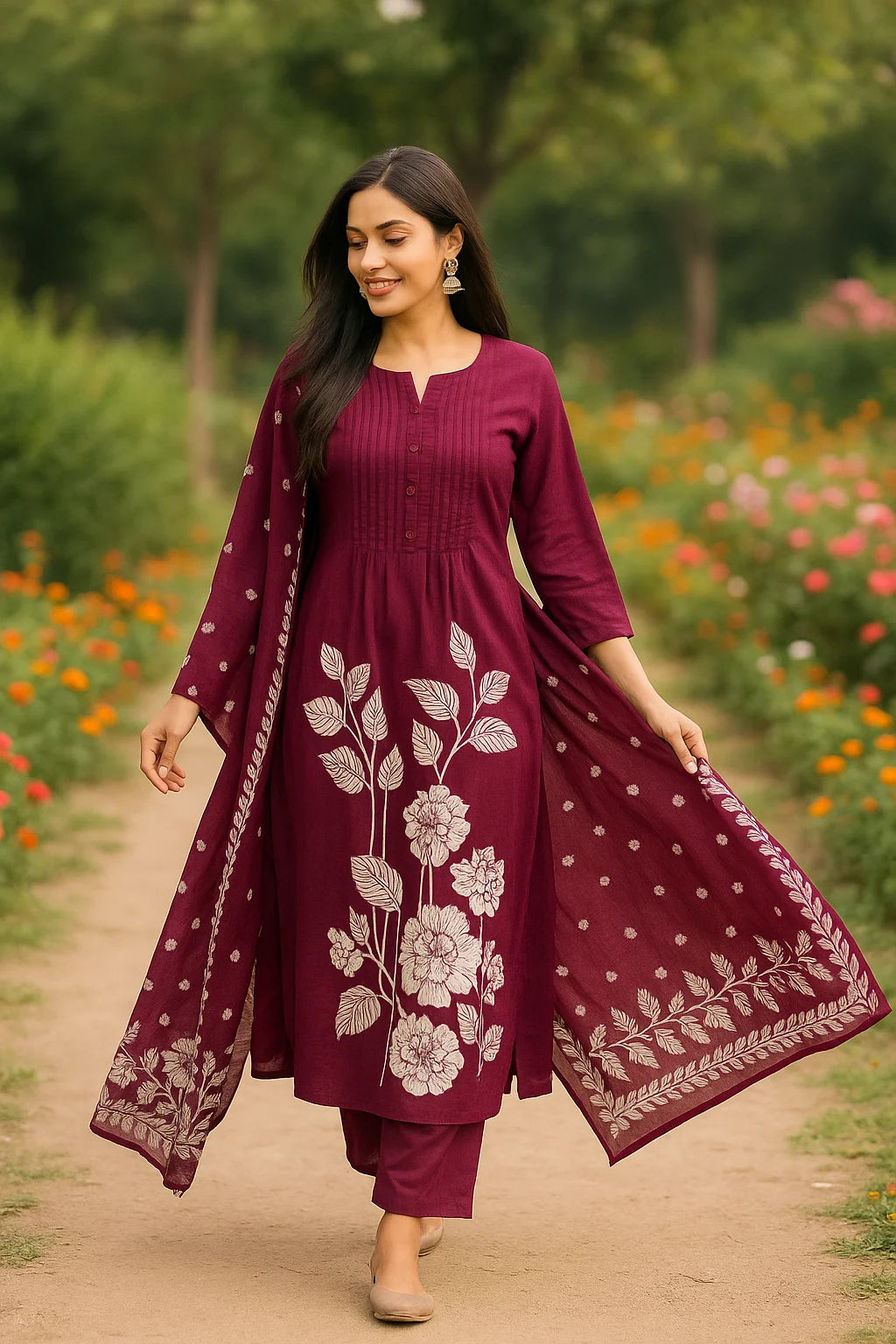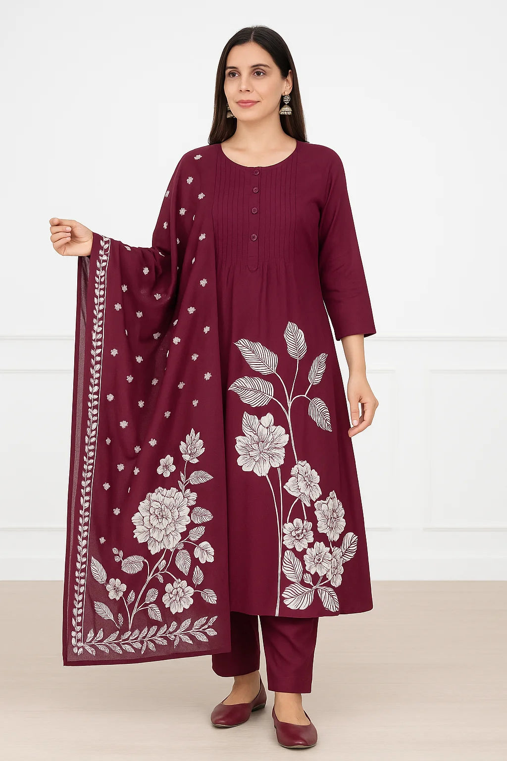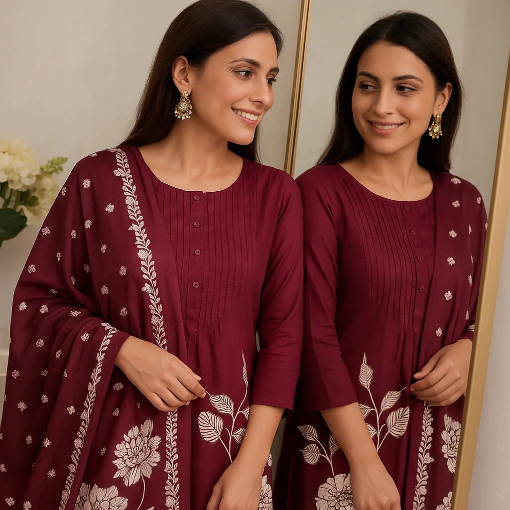 Elegant Floral Rayon Kurti Set with Dupatta – Premium Comfort Wear